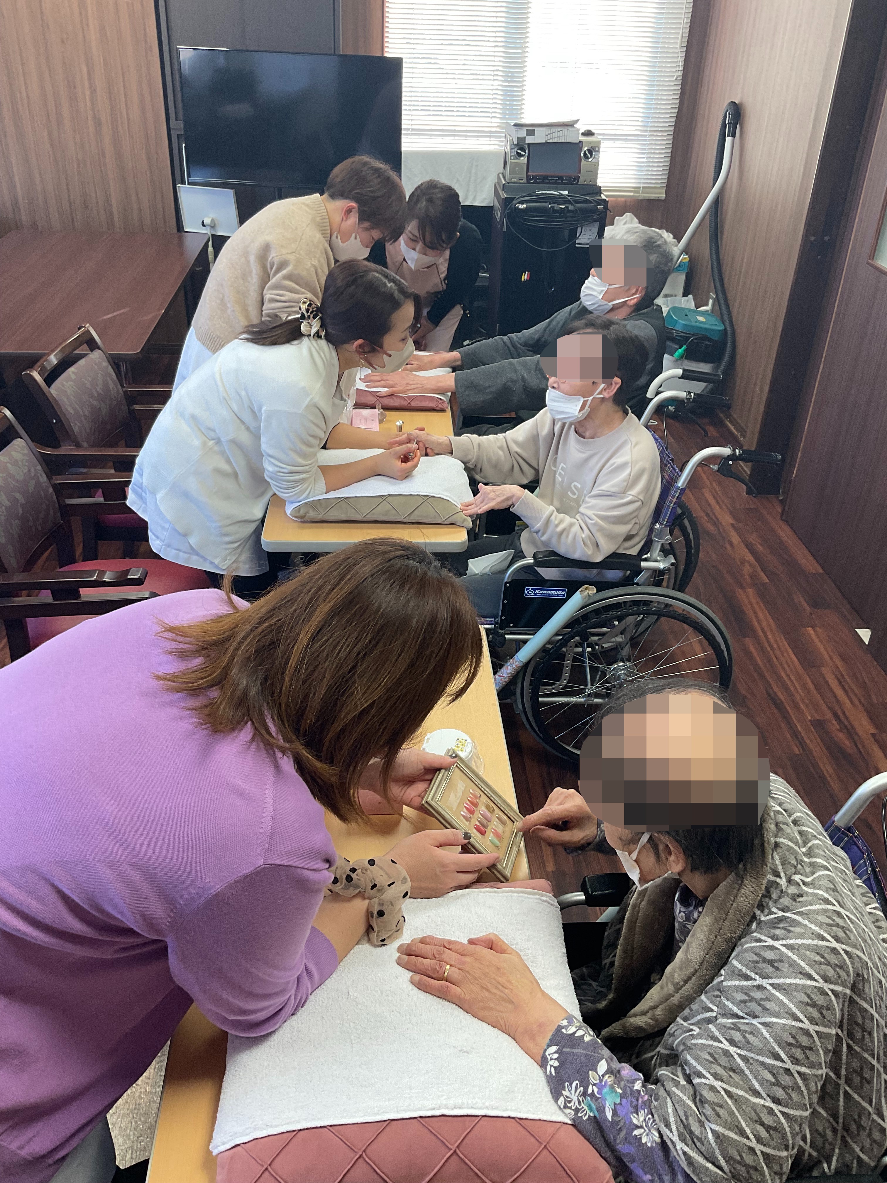今回は心浮き立つネイルを入居者様にして下さいました。