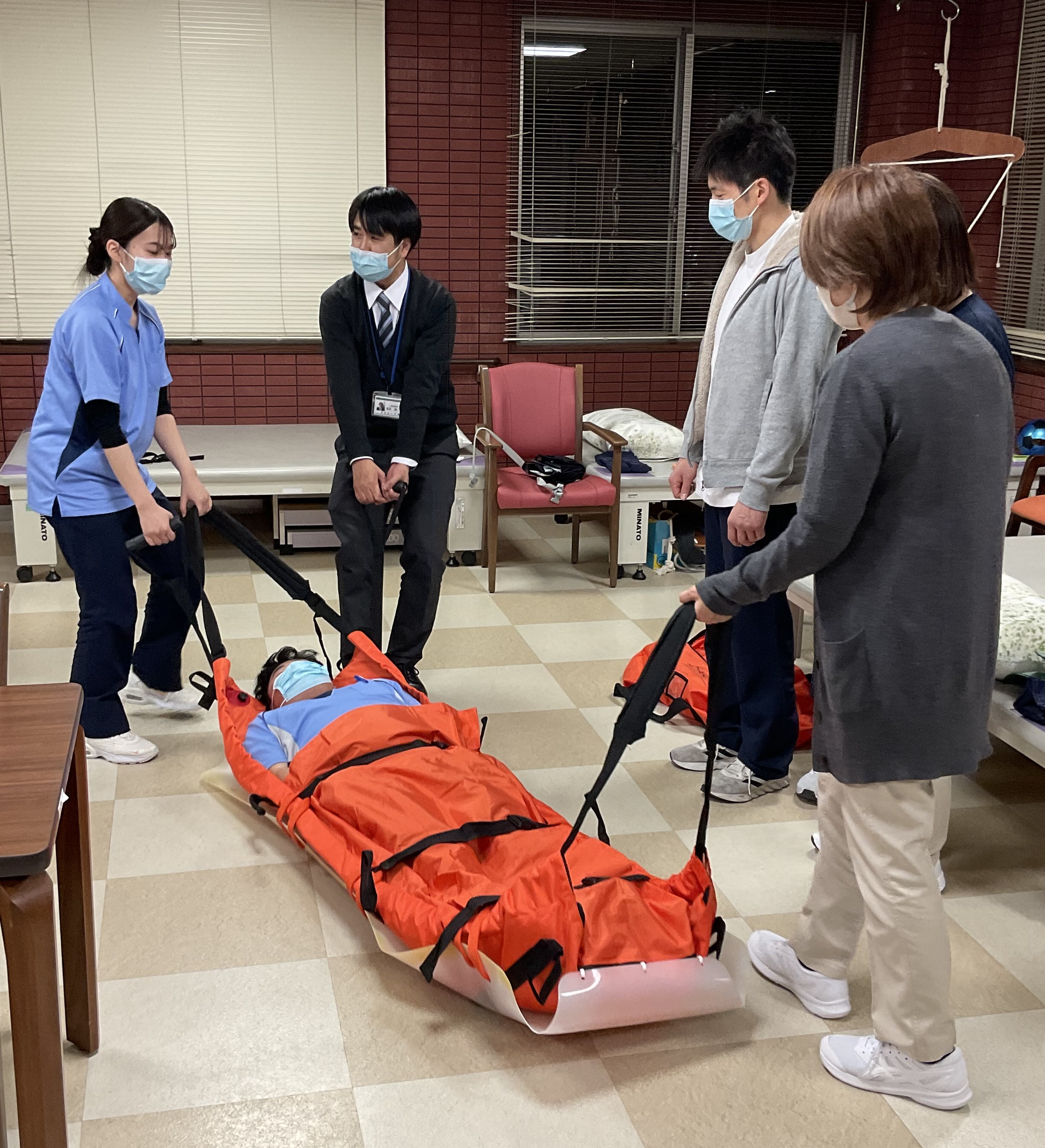 まきむく草庵では年に2回全職員を対象に災害対策研修を行っています。