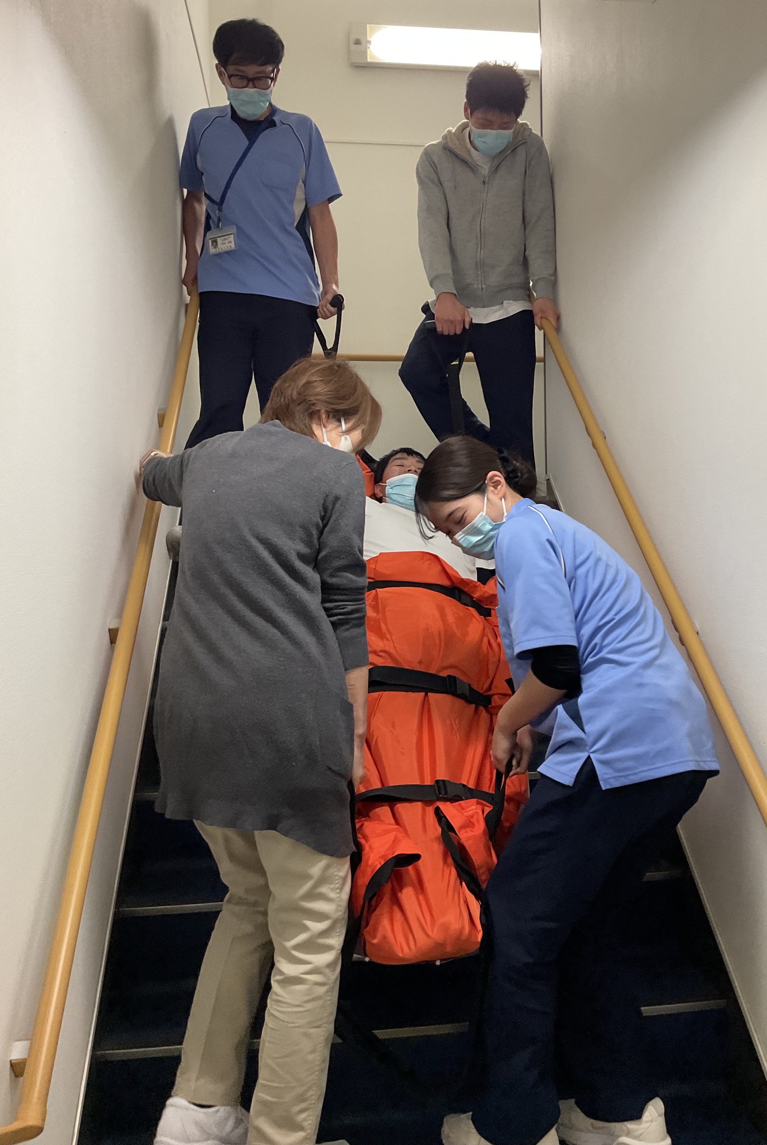 また、身体が動きづらい方を安全に移動させる目的で開発されたエアーストレッチャーを実際に使用してみました。
