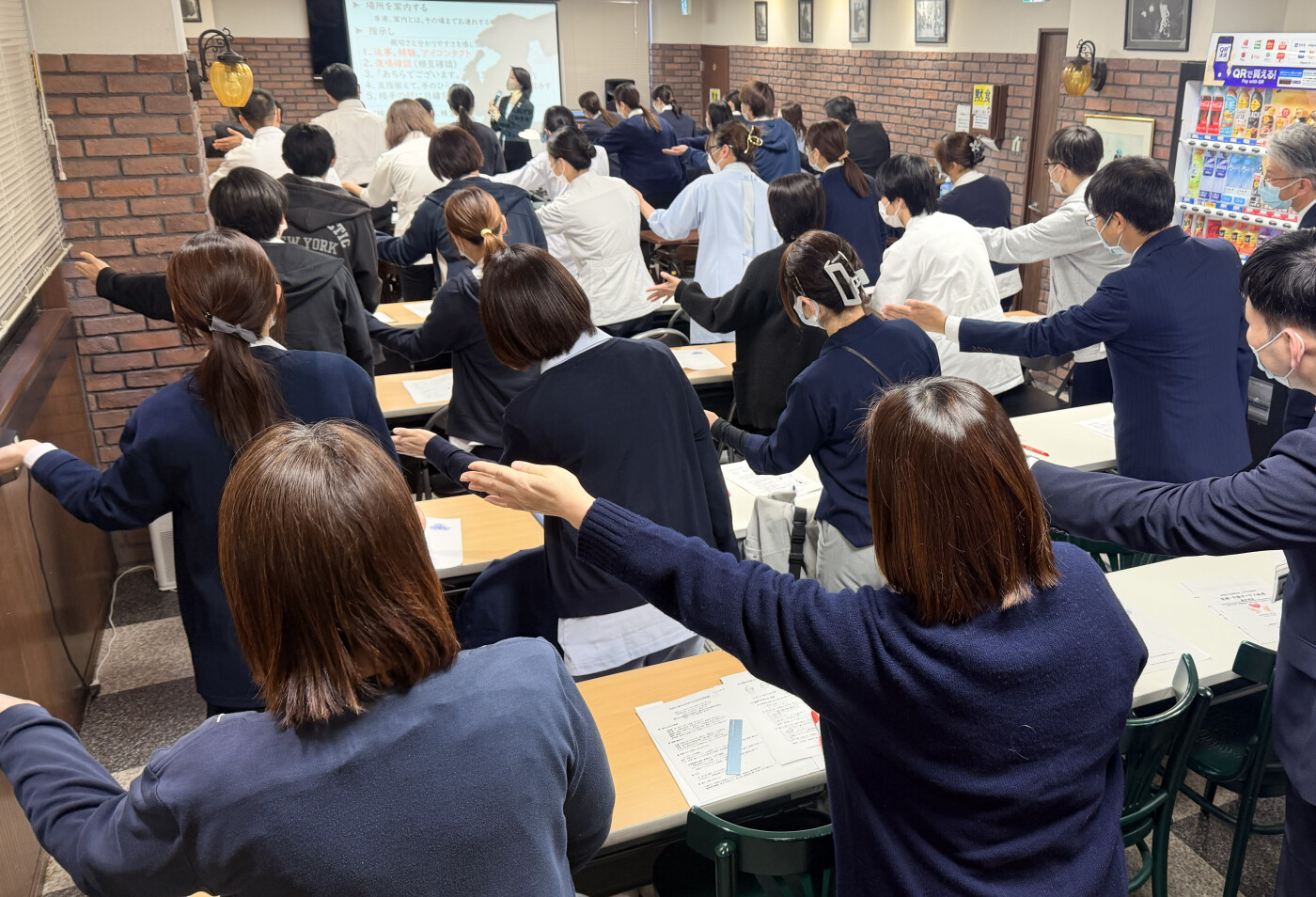 株式会社JAPAN・SIQの米谷徳恵様を講師としてお迎えし、職員全員がチームワークをもって、岡田会の理念に基づき、患者さん、ご利用者さまへの「やさしさ」を提供できるようになるために、現状を知り、ホスピタリティマインドと対人技能(やさしさの表現)の更なる向上を目指すために必要な知識を座学と実技を交えて、ご指導いただきました。