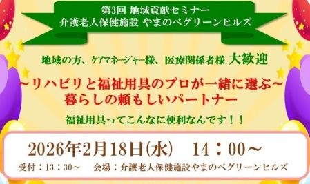 介護老人保健施設やまのべグリーンヒルズ 第3回地域貢献セミナーのご案内