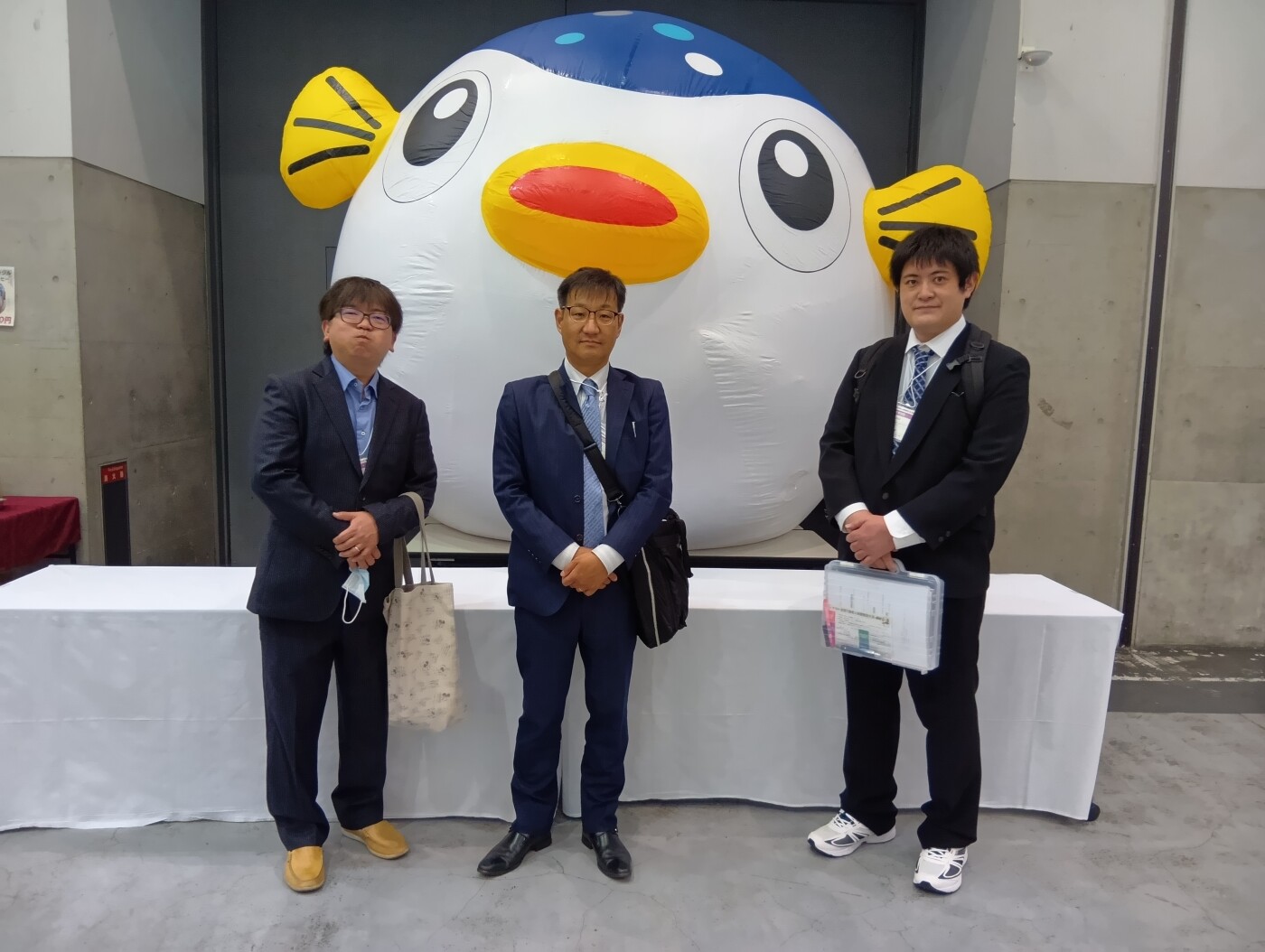 1日目に会場到着 2日目、朝一番に会場「ふく」のマスコットと!!