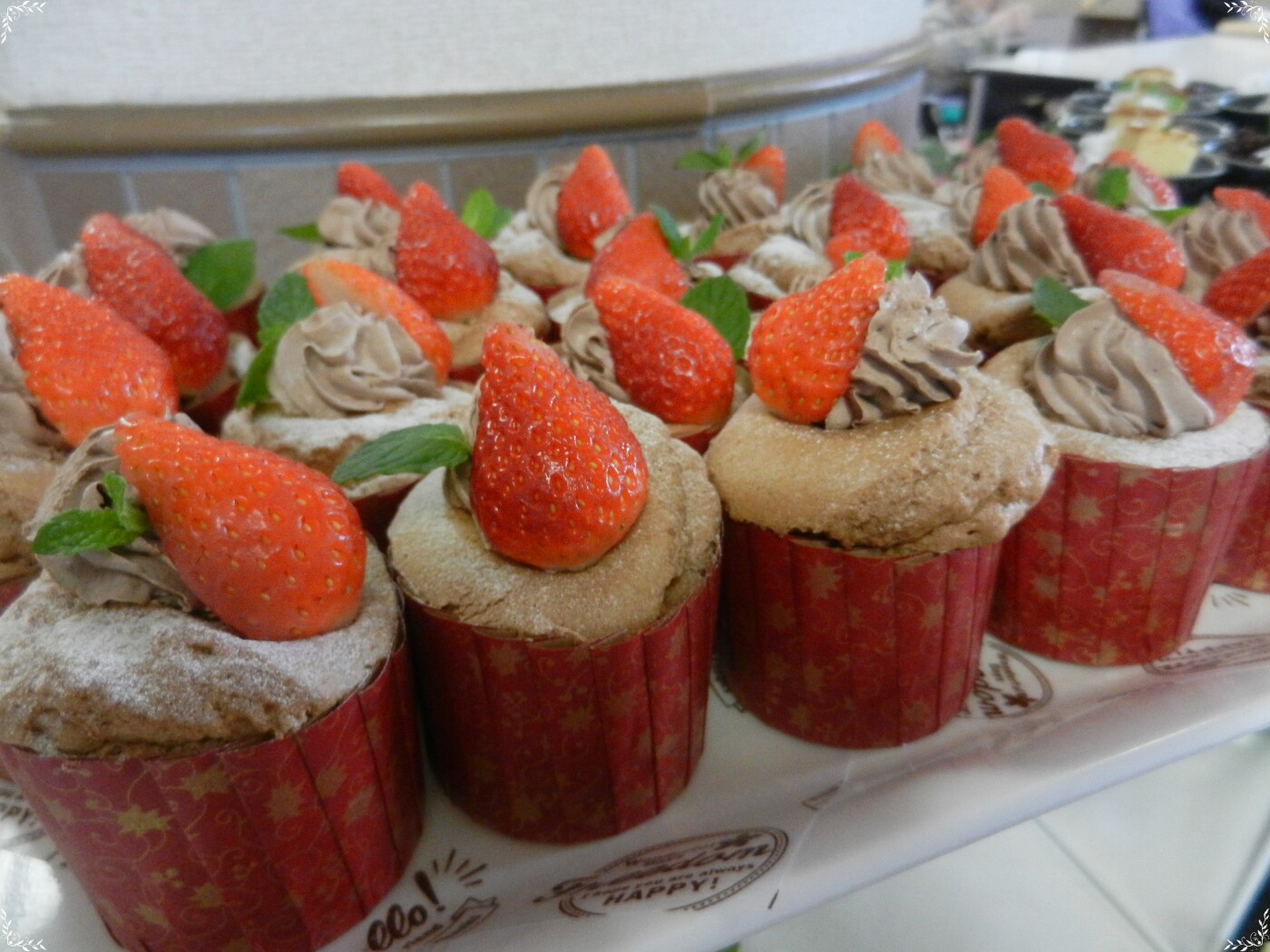 今回のメインは美味しそうないちごが乗ったカップケーキです!