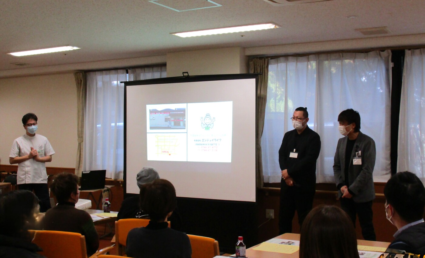 講師には、桜井市にあります福祉用具事業所『有限会社エンジョイ・ライフ』の坂本様・木村様をお招きし、当事業所のリハビリ課米井主任とともに、