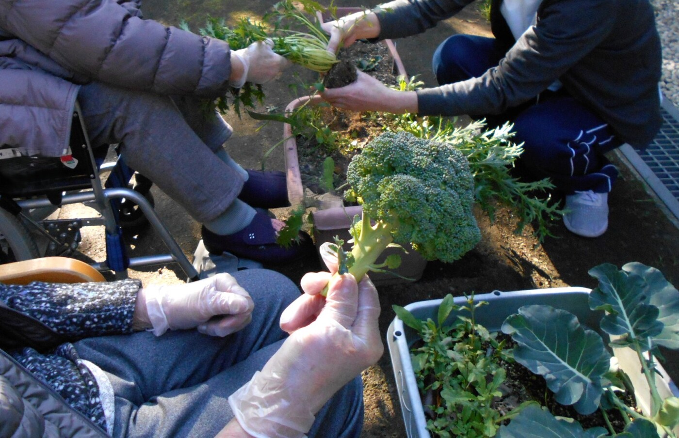 3月初めに、野菜の収穫&お花の植え付けを行いました。今後も、利用者様と共に楽しみながら取り組めたらと思います。